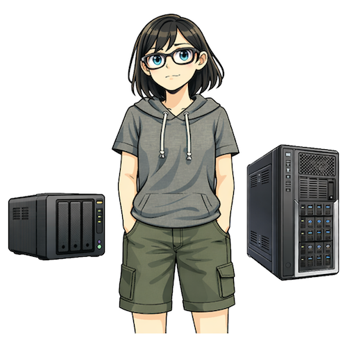 Für viele wäre ein Raspberry Pi der perfekte Einstieg gewesen, auch für mich. Mein Setup hätte etwa so ausgesehen: Raspberry Pi 5 mit 16 GB Arbeitsspeicher, dazu eine SSD mit 512 GB über das M.2-HAT+ sowie ein DAS (Festplattengehäuse) wie das QNAP TR-004 über USB 3.2 (10 Gbps) mit 4 Festplatten im RAID-10-Verbund; für ein einfaches Setup sollte auch ein 2-Bay-Gehäuse ausreichend sein, dort dann als RAID 1. Die QNAP-DAS hatte ich tatsächlich vorher schon als Speichererweiterung für meinen Mac genutzt und den Raspi in der obigen Konfiguration ist inzwischen meine Testumgebung geworden.